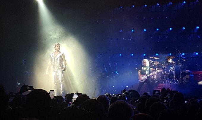 Just spotted @ItsRamiMalek, who’s playing Freddie Mercury in the new biopic, here ready to watch Queen!