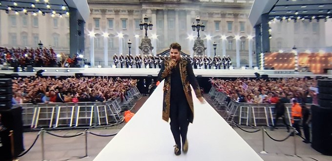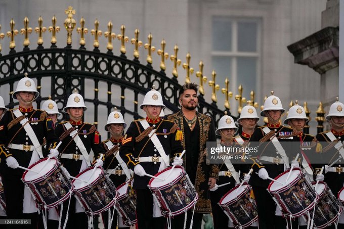 making a grand entrance with the Royal Marine Drummers for #Queen’s performance at the #PlatinumJubilee in front of #BuckinghamPalace tonight! ??? #AdamLambert #GFG