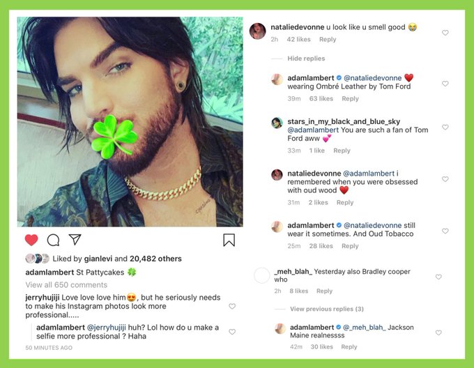 Adam’s responses to fans on “St Pattycakes” post