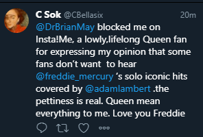 Brian blocked a “fan” on instagram.