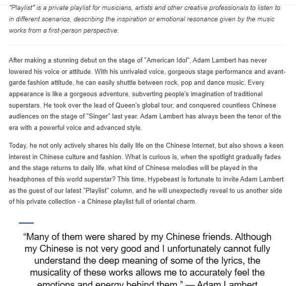 Adam Lambert, the gorgeous tenor of the times, shares his Chinese playlist|Playlist / What kind of Chinese melody would be played in the headphones of this world superstar? 1/2